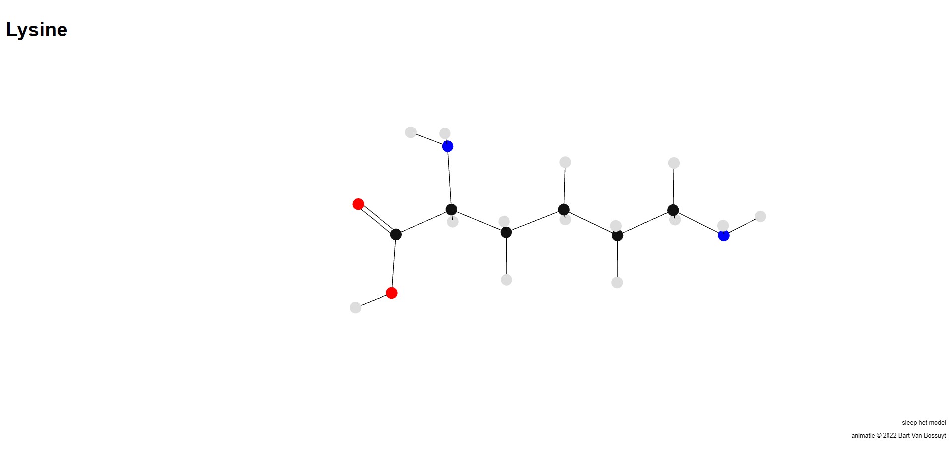 Sleepbaar 3D-model van het aminozuur lysine. Met dubbele binding.